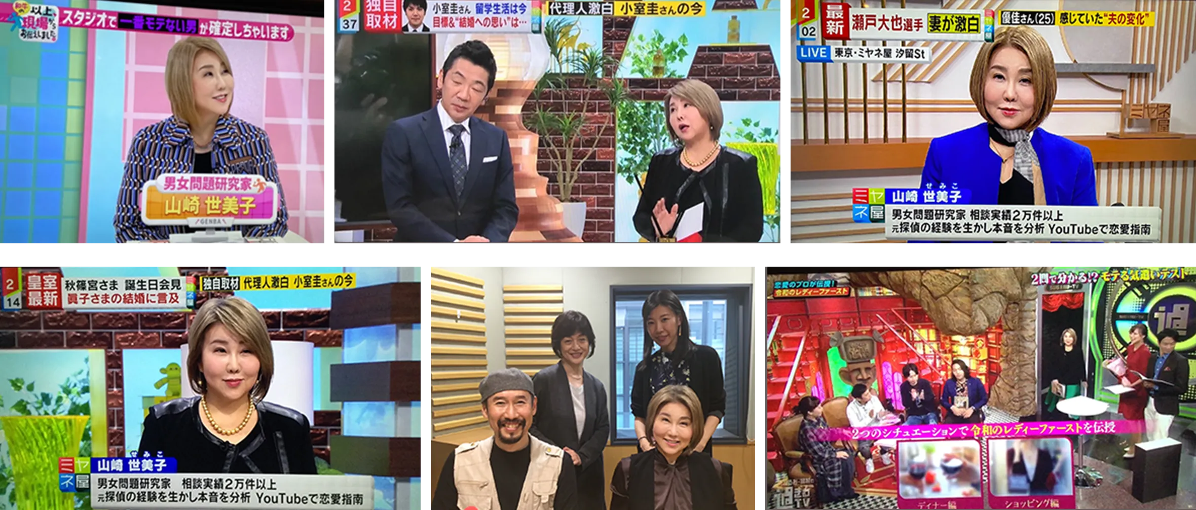 男⼥問題研究家Ⓡとして元⼥性探偵の経験を活かしテレビ・ラジオ・新聞・雑誌など