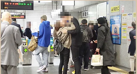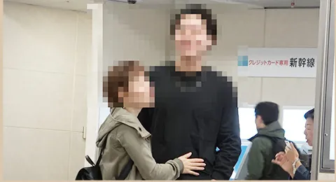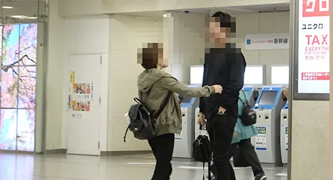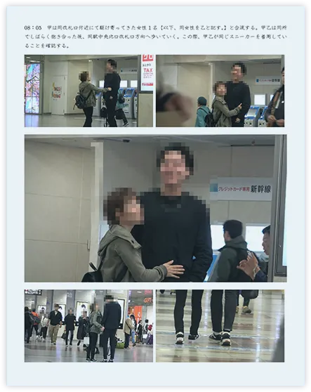 対象者は「JR○○駅」中央改札口付近にて女性と合流する。