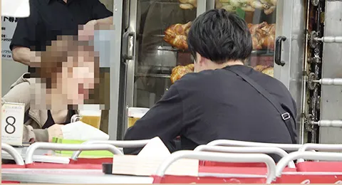 対象者と相手女性はゲームセンター「✕✕✕」に入る。その後、対象者と相手女性は飲食店「△△△」に入る。対象者と相手女性が料理を分け合いながら食事をしている状況を確認する。